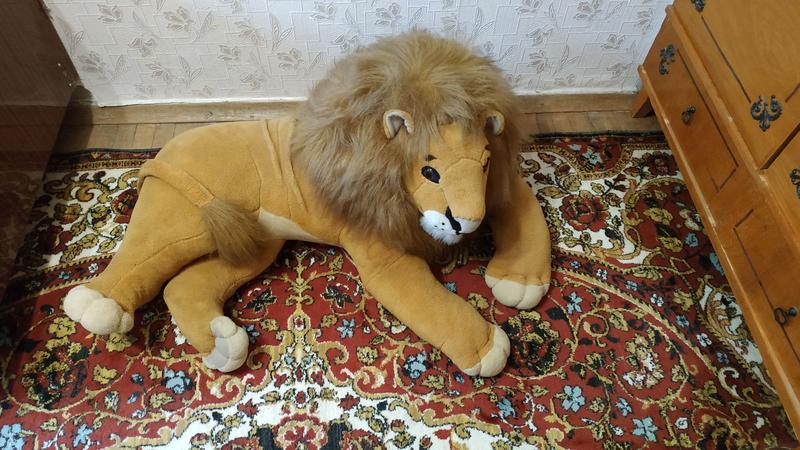 Напольная мягкая игрушка Лев. Размер приблизительно от лапы до лапы 110 см, высота 45-46 см.