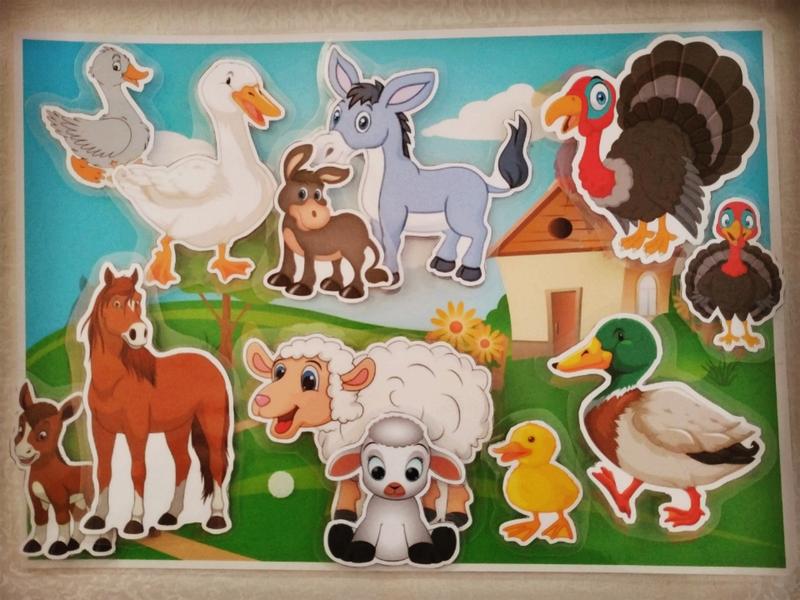 Свійські тварини.Гра на липучках,чудовий подарунок для малечі.Розвиває пам'ять,увагу,та любов до тварин. Вона не боїться бруду та води,зроблена з щільного паперу та якісної ламінаціїї. Ціна вказана за одне ігрове поле.