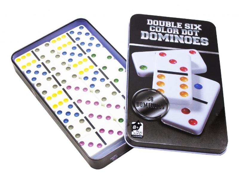 Домино - настольная игра, в процессе которой выстраивается цепь лодыжек ( «косток», «камней»), соприкасающихся половинками с одинаковым количеством точек, обозначающих число очков. Упакован набор в металлический футляр.