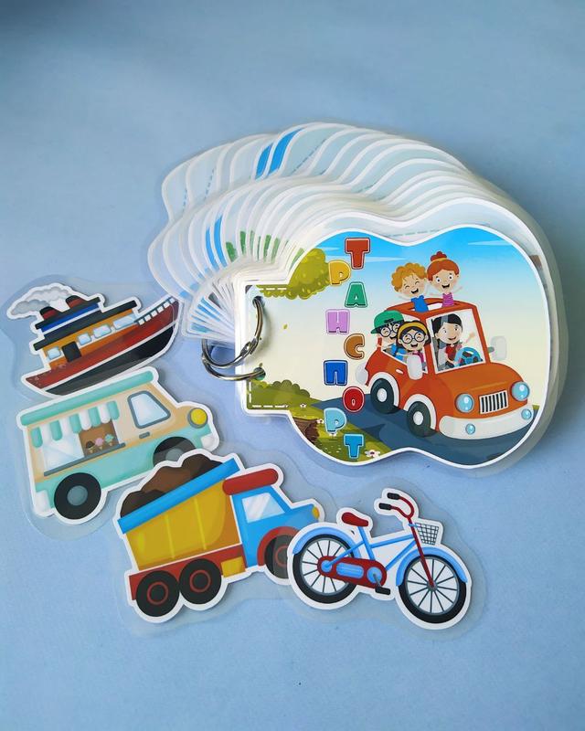 Мини-книга на липучках Транспорт 19 страниц, 18 элементов на липучках Отличный вариант подарок