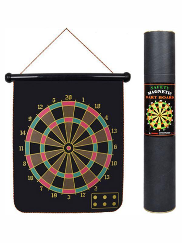 - Дартс отлично подойдет для подарка детям, взрослым, коллегам по работе и друзьям. - Дартс магнитный объединит в игре взрослых и детей. С помощью дартса можно устроить соревнования или турнир. Если к Вам пришли гости, дартс поможет увлекательно и весело провести время. - В отличии от обычного дартса, магнитный дартс безопасен, так как дротики без иголок и не травмоопасны. Магнитные дротики очень крепко держаться на магнитном полотне и не съезжают. - Правила игры: Можно играть один на один, а также командами. Право первого броска разыгрывается одноразовым киданием дротика в мишень - кто попал в «яблочко» или ближе всех к нему, тот и бросает первым. Бросают дротики на расстоянии от мишени. Каждый игрок за свой ход кидает по 3 дротика, причем максимальное количество очков за один ход не может превышать 180. После этого очередь переходит к сопернику. Попадание в середину мишени (она еще называется «яблочком») приносит участнику 50 очков Попадание в следующую область зеленого цвета приносит 25 очков. Есть также области «удвоения» и «утроения» на узком внутреннем кольце. Игру начинают с 301 или 501 очка (в разных вариациях по-разному), и ход за ходом от этого количества отнимают выбитую сумму. Выигрывает тот, кто быстрее доходит до 0, причем последний бросок нужно обязательно попасть в «яблочко» или «удвоение». - В наборе: Двухстороннее полотно, 6 дротиков. Упаковака картонная туба. - Возраст: от 3 лет. Подходит для детей и взрослых. - Размер упаковки: 8х45 см. - Размер игрушки: Размер поля 37х46 см. Длина дротиков 8 см. - Товар сертифицирован. -