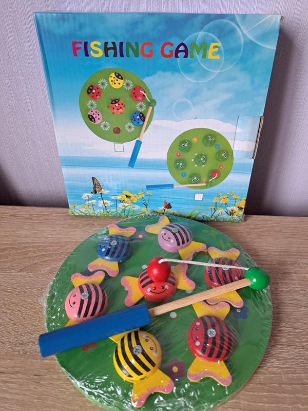 чудова іграшка для малечі рибки та удочка на магніті діаметр 20см дерево