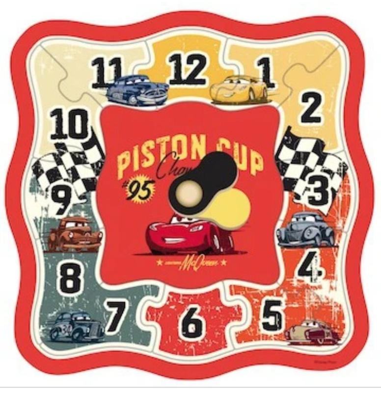 Стать: Для хлопчиків Вік: 5 років Тип іграшки: Пазли Матеріал: Дерев'яні Кілька примірників у наявності Навчальний дерев'яний годинник-пазл Piston Cup Cars Pixar.