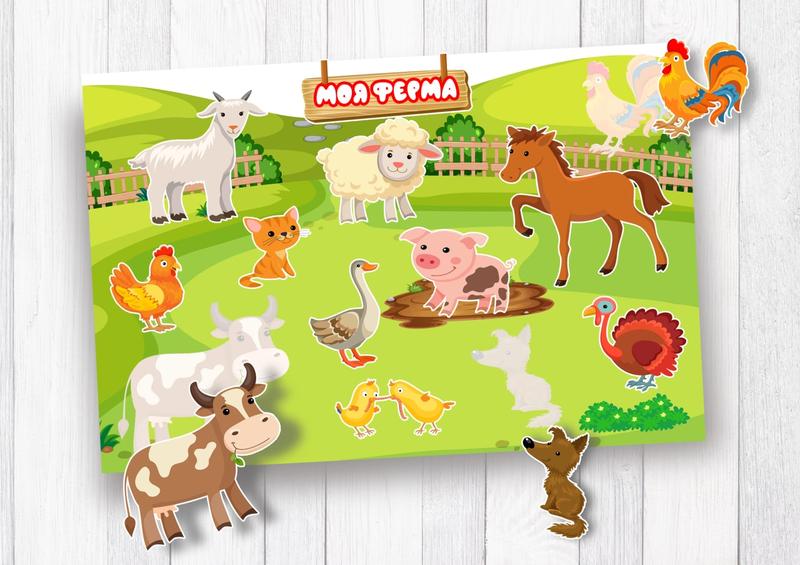 Моя ферма поможет вашему малышу выучить животных, обитающих на ферме. Страница имеет яркую окраску и детали на липучках, что позволяет развивать у малыша мелкую моторику рук и концетрацию. При формировании книги от 3 страниц, минус 10 грн от стоимости страницы. Также можно сделать титульную страницу с именем вашего ребенка.