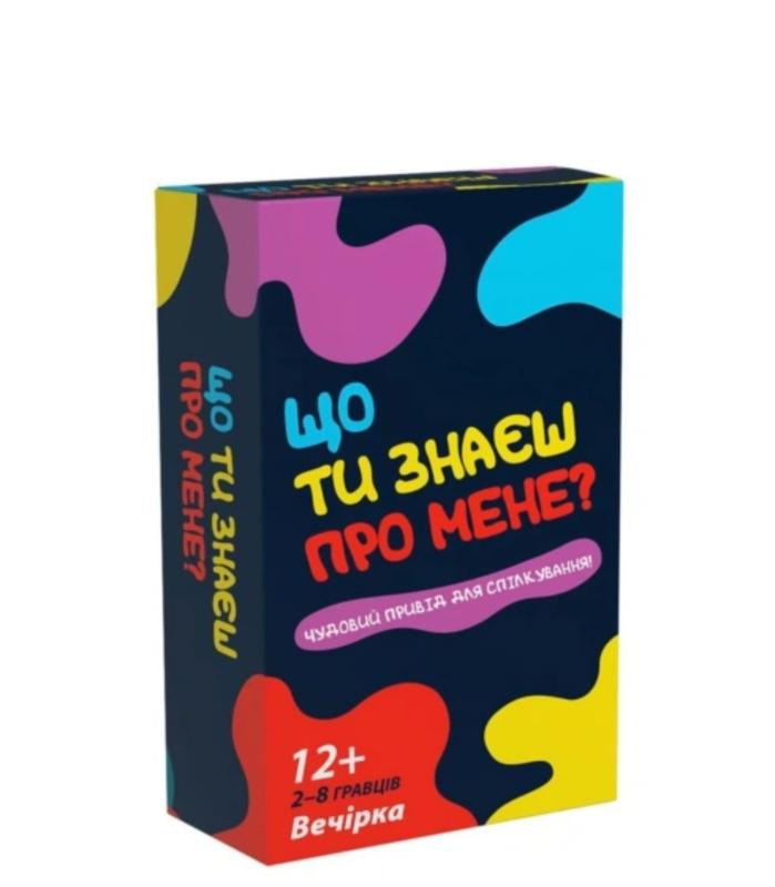 Мета гри: правильно відповісти на запитання про провідного гравця та першим набрати 15 балів. Гравець робить свій вибір, а решта гравців має вгадати, що вибрав перший гравець. Той, чия здогадка вірна, отримує бал. Далі питання себе зачитує наступний гравець. Перемагає той, хто одержав максимальну кількість балів. підходить для гри всією сім'єю; дозволяє весело провести час у колі друзів; сприяє всебічному розвитку дітей; комплектація: ігрові картки – 100 шт., правила гри – 1 шт..Нова