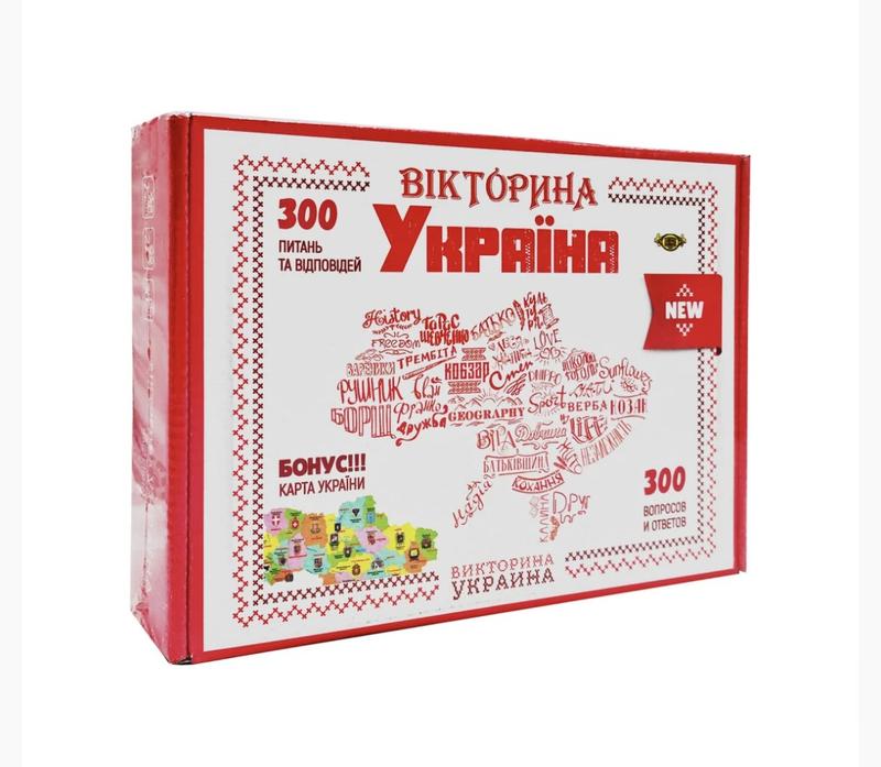 Лучшая настольная игра для маленьких и взрослых патриотов – набор «Викторина Украина» торговой марки «Мастер». Вся семья будет в восторге. Настольная игра не только прекрасно развлекает, но и помогает узнать как можно больше о родине. Участникам предстоит сразиться в эрудиции. Викторина посвящена Украине. Здесь будут вопросы на разные темы: культура, география, природа, спорт, история. Какие задачи получит каждый конкретный участник – это решает игровая рулетка. Возвращаете ее и получаем результат. Задания написаны на карточках. Они изготовлены из качественного прочного картона, который получит не одну сотню игр. Интересных вопросов много. Наверное, даже лучшим знатокам украинских загадок придется поломать голову над некоторыми задачами. Время ответа ограничено. Его отмеряют песочные часы, которые также входят в набор. Можно устроить двубой для двоих, или викторину для большой компании. Скукать точно не придется. Играть можно на украинском или русском языке