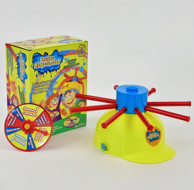 Новая игра от Fun Game «Вечеринка Мокроголовых» настоящая водная рулетка с внезапным поворотом событий! Игра поможет захватывающе провести время в веселой компании, а также освежиться в жаркий день. Использование настоящей воды сделает Вечеринку Мокроголовых по-настоящему увлекательной и создаст отличную атмосферу счастья и позитива! Все, что требуется от каждого игрока – по очереди надевать на голову шлем, на котором установлен резервуар с водой и заглушками, и крутить рулетку. Как только её стрелка остановится, необходимо выполнить одно из 5 указаний, среди которых: «Вытяни 1 стержень», «Вытяни 2 стрежня», «Вытяни 1 стержень и крути еще раз», «Крути еще раз» и «Пропусти ход». Попытай свою удачу и возможно ты останешься сухим! Конструкция игры довольно проста. Резервуар для воды надежно закрыт крышечкой. В нем проделано 8 специальных отверстий для стержней. Собрав конструкцию и наполнив контейнер водой, его необходимо прикрепить к шлему с отверстиями, через которые будет литься вода, если вытащить из конструкции один "невезучий" стержень. Комплектация: • Шлем; • Контейнер для воды; • 8 стрежней; • Рулетка. Размеры/габариты - длинна (см): 20 см - ширина (см): 18 см - высота(см): 10 см Размер упаковки: 20 см × 11 см × 25 см Упаковка: Коробка Возраст: от 4 лет