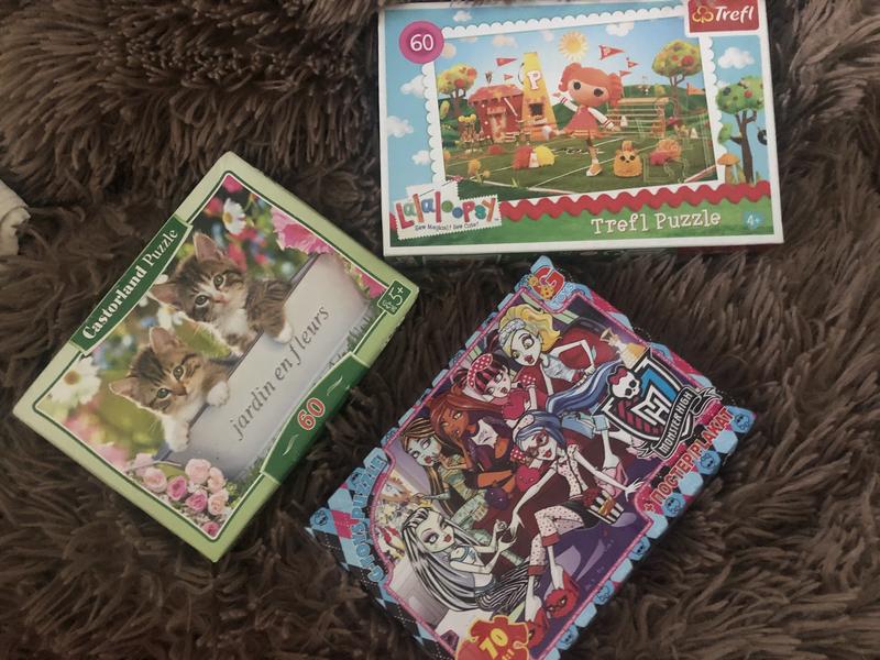 Пазлы в отличном состоянии Лалу пси состояние новых с котятами совсем небольшая при метать на коробке монстр хай отсутствует одна запчасть