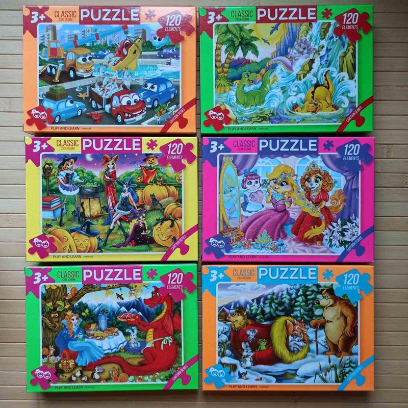 Пазлы в ассортименте, 120 элементов. Красивые картинки с героями мультфильмов и сказок