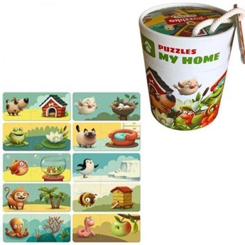 Пазлы "Мой дом" Puzzlika (13074) - обучающая игра, которая непременно придется по душе Вашему маленькому любознательному непоседе. Если Ваш ребенок любит увлекательные настольные игры, то этот набор, укомплектованный подарочной картонной коробкой, вызовет у него любопытство благодаря оригинальному, красочному исполнению и необычным заданиям. Крохе необходимо сложить из 20-ти отдельных элементов 10 картинок, которые связаны между собой по смыслу. Используя пазлы, познакомьте малыша с новыми названиями животных и насекомых, объясните ему, что кушает тот или иной зверек, где он живет и многое другое. Занимательное времяпровождение прекрасно расширяет кругозор, помогает малышу пополнить словарный запас, а также развивает мелкую моторику пальчиков, сенсорику, логику, пространственное мышление и воображение. Игра отлично подойдет в качестве подарка для деток от 2-х лет.