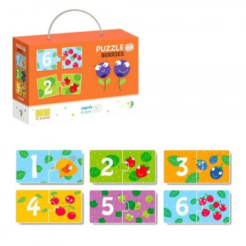 Яркие развивающие дуо пазлы "Яголдки". Малышу нужно правильно соединить пазлы, состоящие из 2-х элементов (цифра-количество). 24 карточки, 12 пазлов. Размер детальки: 6,5 х 6,5 см.
