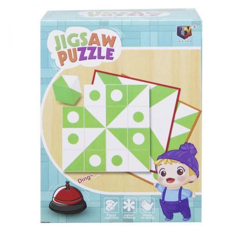 В настольную игру "Головоломка" можно играть как одному, так и вдвоем. В наборе есть два комплекта кубиков, на которые нужно наклеить стикеры с геометрическими формами (есть в комплекте), карточки с изображениями разных узоров и звонок. Суть игры заключается в том, чтобы собрать из кубиков узор, изображенный на карточке, быстрее своего оппонента. Игрок, закончивший первым, звонит в звоночек.