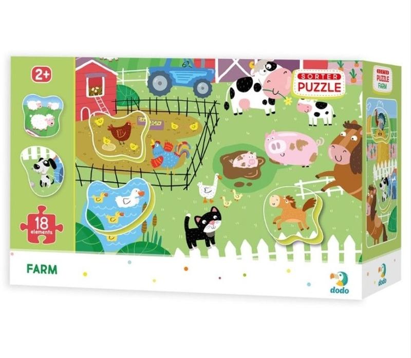 Яркие развивающие пазлы-сортер "Ферма". Малышу нужно правильно вставить вложки в картинку, чтобы получился готовый рисунок. У комплекті: 18 деталей.