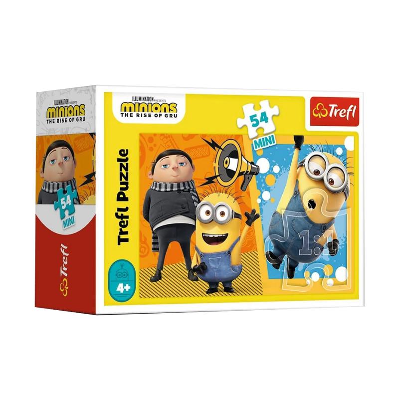 Пазлы Мини на 54 элемента с изображениями персонажей анимационного сериала "Миньоны". Долгожданная победа наших героев в борьбе со злодеями.