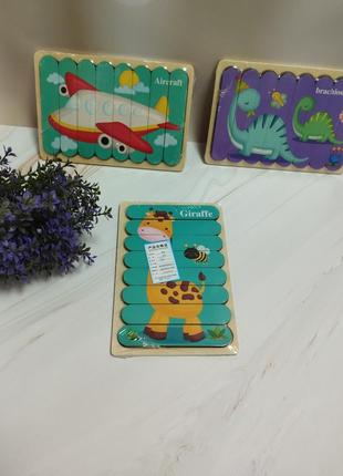 Развивает логическое мышление, мелкую моторику пальчиков, учит анализировать, знакомит с понятием части и целого. Материал: дерево. Пазл двусторонний. В ассортименте: жираф-зебра, динозавр-динозавр, самолет-ракета. Размер: 18×12.5см. Рекомендуемый возраст: от 12месяц. Смотрите другие Мои объявления, подписывайтесь, имею регулярные обновления детской, женской одежды и обуви, и игрушек. Постоянным покупателям скидка 5%. При заказе от 500 грн бесплатно доставка вкрпоште.