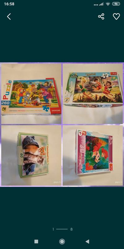 Пазлы для малышей,интересные,увлекательные,ребенок будет развиваться,развивать мышление, узнавать героев из прочитанных сказок,есть новые пазлы,не распакованные,есть пазлы б/у,см фото,все пазлы в отличном состоянии,3D пазлы Диснеевские 4+, пересылаю Новая почта, Укрпочтой после предоплаты в ваш город пишите, спрашивайте всем отвечу.цена за все пазлы.Безопасной оплаты нет.Высылаю после оплаты.