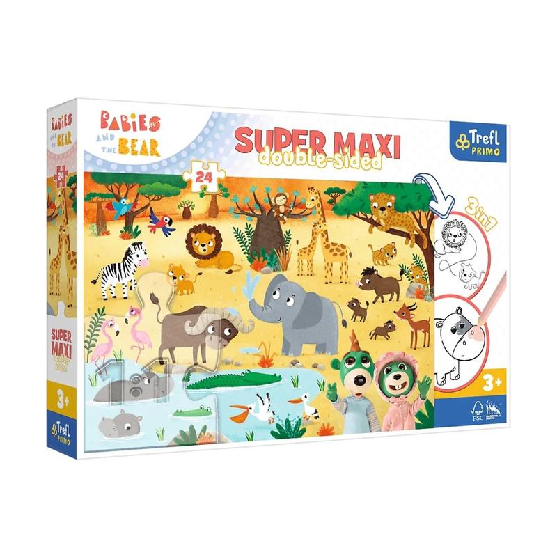 Детские пазлы super махи "детки на сафари" 24 элемента, с раскраской
