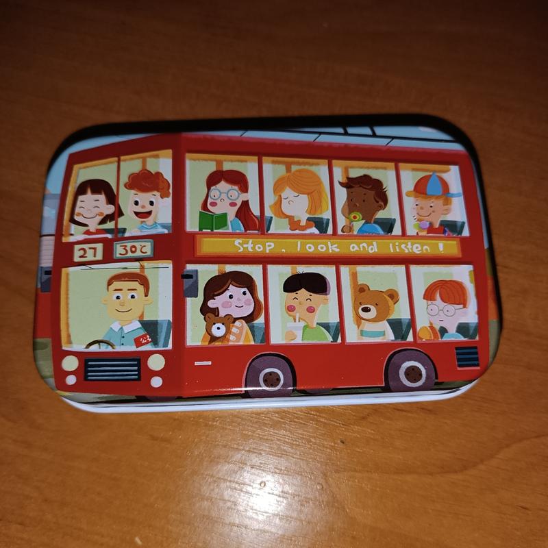 Деревянные пазлы в металлической коробке автобус