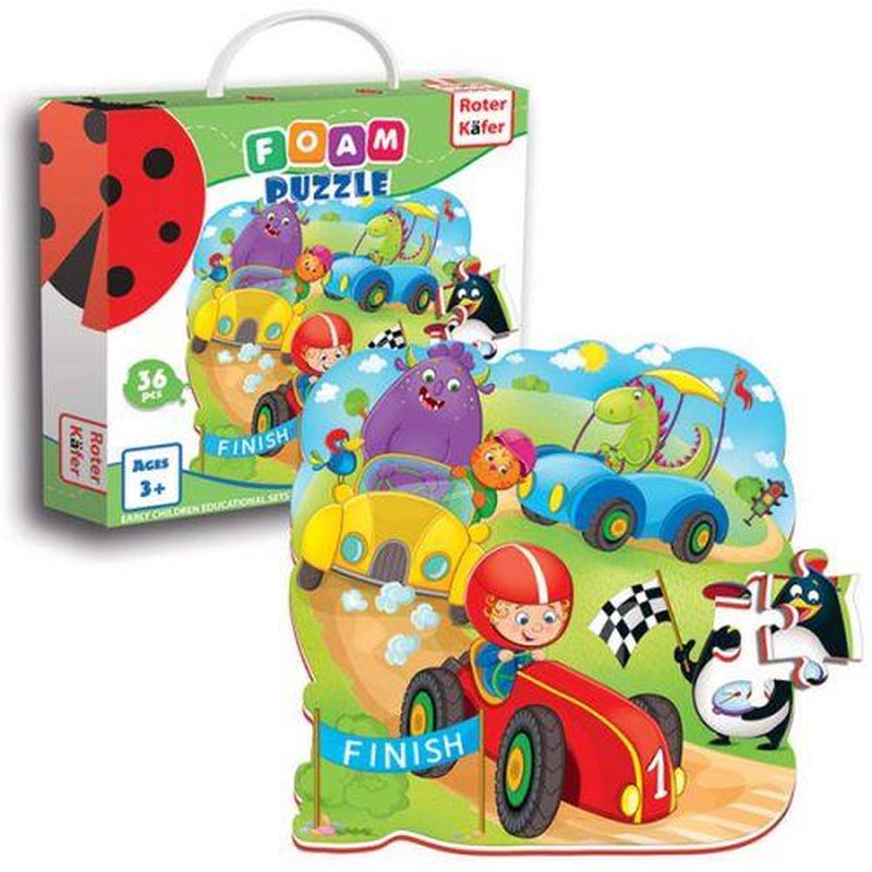 Интересный набор "Гонка" понравится малышу. Мягкие пазлы полностью безопасны для ребенка. Размер одной детали - 8х5 см. Комплект состоит из 36 элементов. Размер готовой картинки 31х31 см. Выполнено из качественных материалов. Для детей от 3-х лет. _