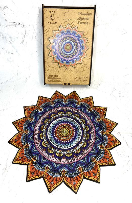 Деревянный фигурный пазл max woody "мандала" a3 200 деталей