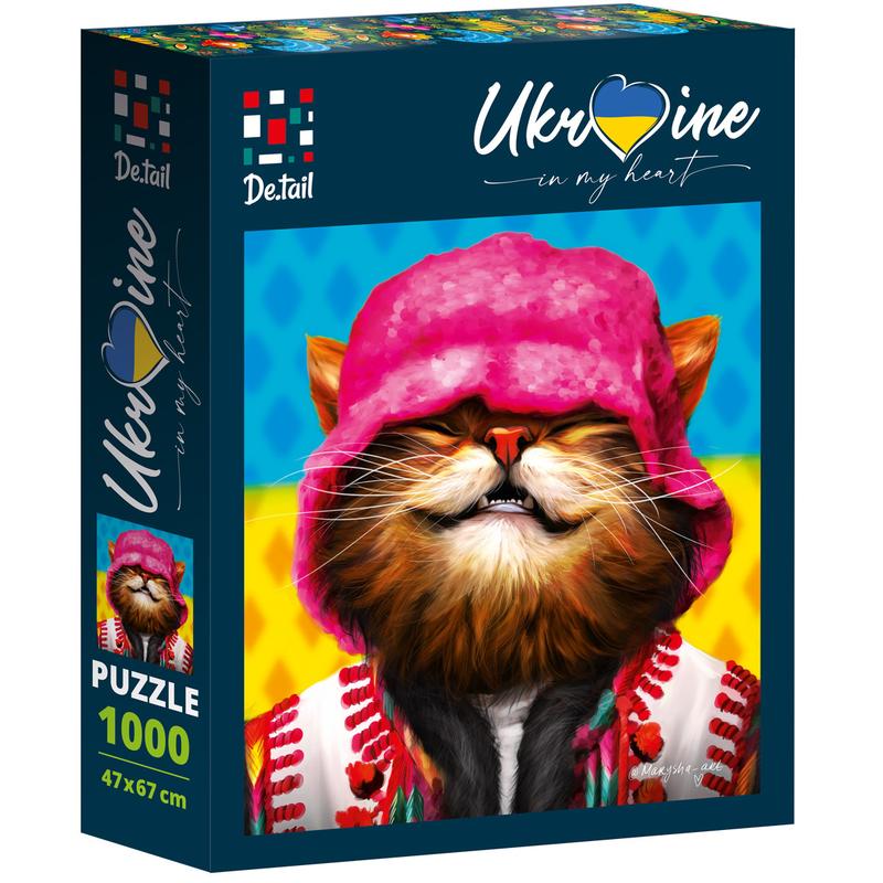 Пазли Smiling cat in pink hat, по 1000ел., У коробці 30*24*6см, Vladi Toys, Україна Увага. Виробник залишає за собою право змінювати комплектацію, колірну гаму та характеристики товару без попереднього повідомлення. .