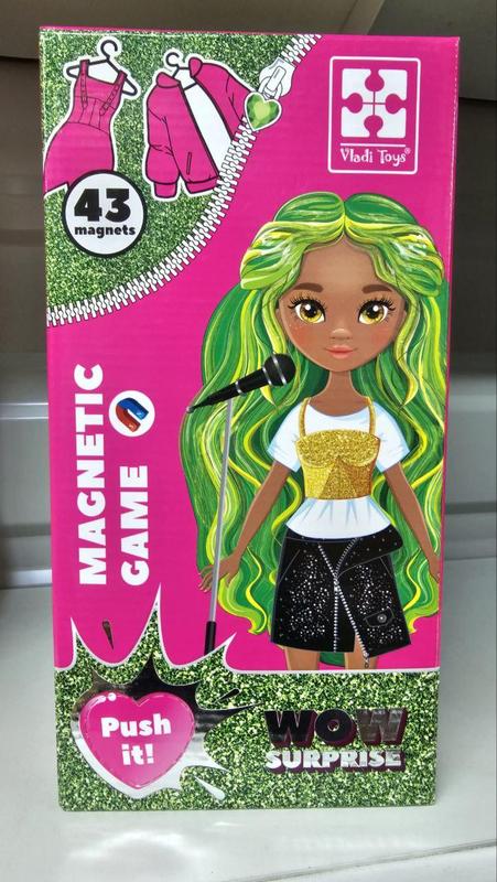Магнитная одевалка WOW Surprise «Singer» Знакомьтесь с нашей героиней! Она известная певица. Кроме музыки, она обожает создавать интересные образы. В ее гардеробе можно найти разные элементы одежды: как повседневные, так и праздничные. Давайте рассмотрим их поближе! Подбирайте для девочки магнитную одежду и крепите к кукле-основе. Воспользуйтесь книжечкой-инструкцией, чтобы узнать, какие готовые костюмы можно сложить. А также фантазируйте, меняйте магниты местами и создавайте собственные неповторимые образы! Ищите WOW Surprise в каждой коробке! В процессе игры тренируйте воображение, креативное мышление, творческие навыки и мелкую моторику. Комплектация: 43 магнита, кукла, сюрприз, правила игры.