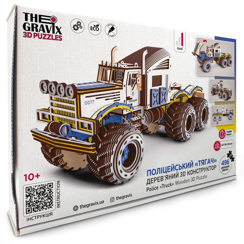 3d пазл механический из дерева thegravix тягач полицейский 496 деталей