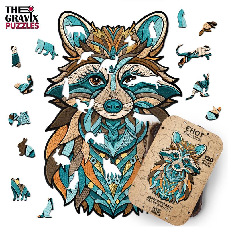 Деревянный фигурный пазл thegravix серия животные "енот" 120 деталей