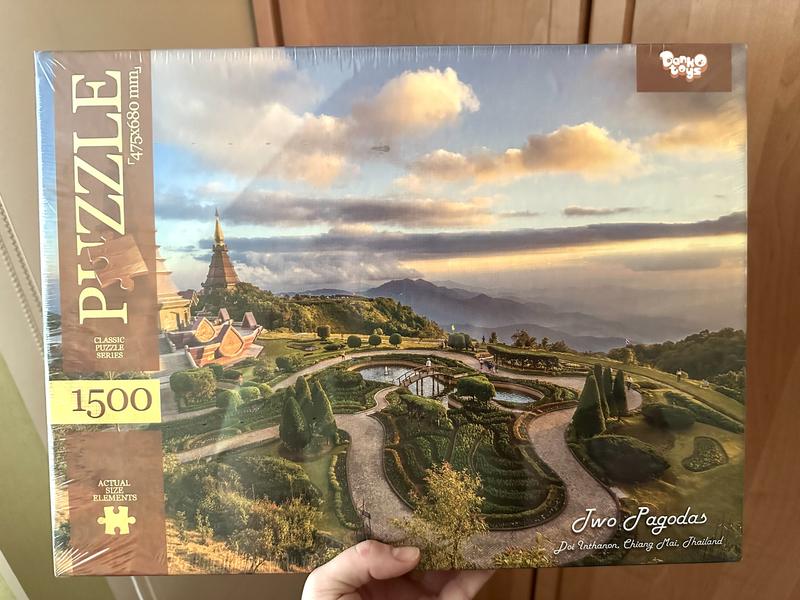 Пазл новий, упакований в плівку на 1500 штук Зображені 2 пагоди храму в Чиангмаї, Таїланд