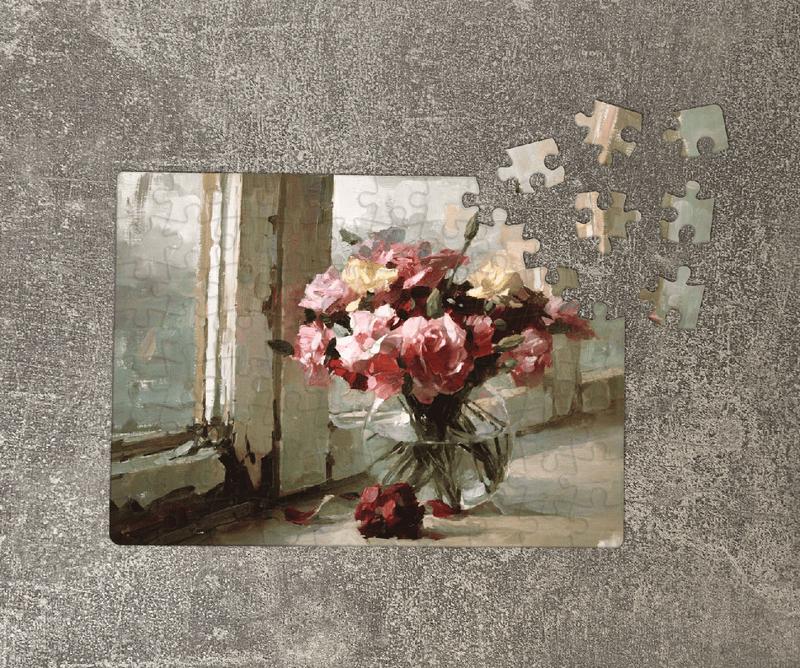 Пазл цветы на старом окне. магнитный а5, 80