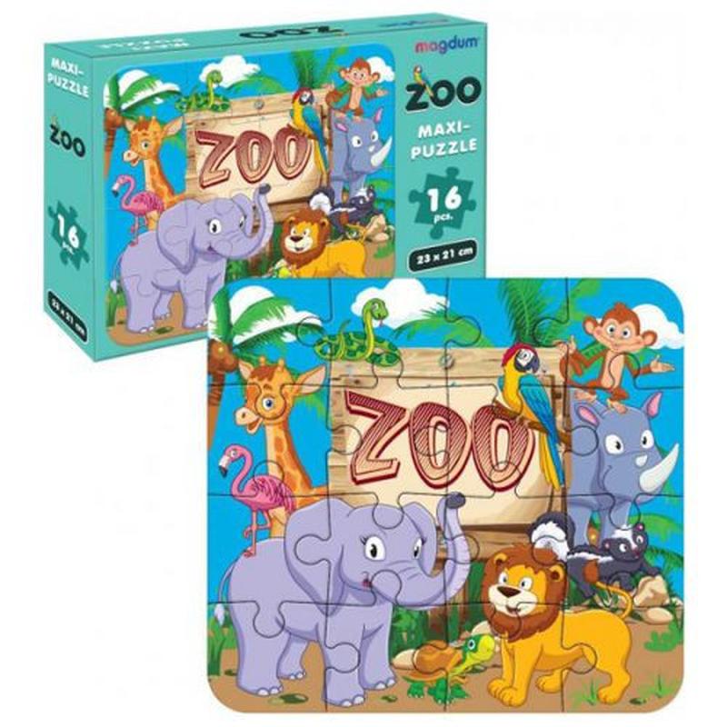 Макси-пазл Зоопарк от MAGDUM состоит из 16 крупных элементов и подходит для детей младшего дошкольного возраста, которые только учатся собирать картинки из кусочков. Процесс собирания увлекает их и помогает развивать внимание, логическое мышление, терпеливость, усидчивость, зрительную память и мелкую моторику. Характеристики: Крупный размер деталей (5х5 см) Детали хорошо стыкуются и соединяются Изготовлены из плотного картона (толщина 3 мм) Если перевернуть детали, то вы увидите простые примеры, если ребенок уже умеет складывать, то сможет собрать пазл без картинки. Что нужно делать? Найди пример с ответом 1 – это верхняя левая деталь. Каждая следующая будет иметь ответ на один больше, чем предыдущая. Собирать детали нужно рядами слева направо.