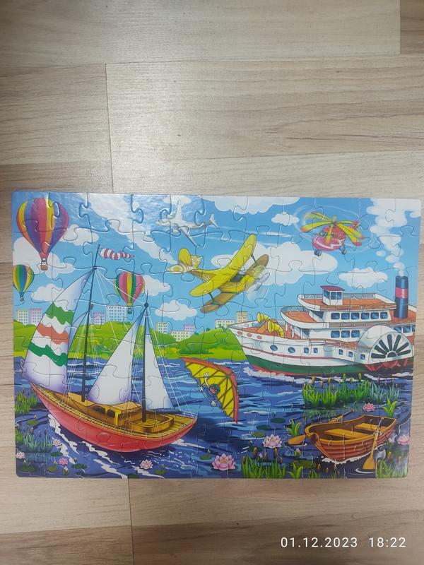Детские пазлы Транспорт. В небе и на воде 83446, 88 элементов Энергия Плюс! Красочные фирменные Пазлы 88, Арт.ЭГ-18. Транспорт. В небе и на воде 83446 - прекрасно выполненный набор, представленный в новой тематической серии украинской торговой марки «Энергия Плюс». Игровой инструментов, одобренный для детей старше четырех лет, сочетает в себе продуманное оформление, отличное наполнение и отличное качество изготовления с применением безопасных материалов. Набор пазлов разработан из уплотненного ламинированного картона толщиной 2 мм, который не имеет неприятных запахов и является абсолютно безопасным для детского здоровья. Если Вы не знаете чем увлечь малыша, отвлечь его от компьютерных игр и просмотра мультсериалов, то такой пазл станет отличной находкой для Вас. Ваш малыш будет в восторге от яркого дизайна и продуманного наполнения в компактной, подарочной коробке. В наборе предусмотрено 88 элементов, из которых малыш будет самостоятельно составлять картинку размером 300 х 420 мм с сюжетом из сказки. БЕЗ КОРОБКИ!