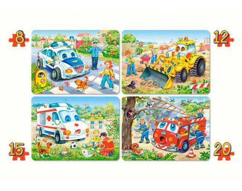 Пазлы "Веселый транспорт 4 в 1". 4 пазла на 8, 12, 15 и 20 элементов. Развивают логическое мышление, мелкую моторику рук, усидчивость._ Бренд: Castorland Упаковка: Коробка Цвет: Разноцвет Габариты в упаковке: 32.5 x 22.5 x 5 см Габариты без упаковки: 33 x 23 x 5 см Cтрана производитель: Польша Материал: Картон Комплектация: 4 пазла на 8, 12, 15, 20 элементов