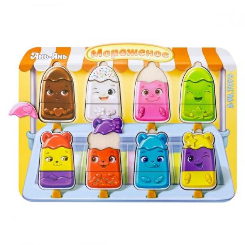 Сортер-пазл "Мороженое" - с 8 рожками мороженого разного цвета. Каждое мороженое разделено на 3 части, все они взаимозаменяемы, можно собрать свое разноцветное мороженое. Также можно собирать мороженое ориентируясь на украшения, которые мы спрятали на разных частях мороженого (сердце, звездочка, цветок или присыпка). все детали легко достаются пальчиками._