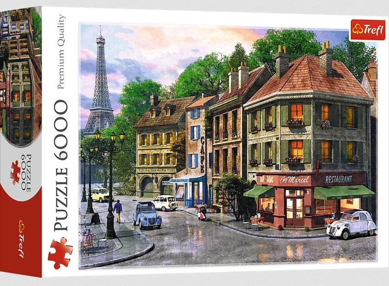 Пазл внушительных размеров, состоящий из 6000 деталей, "Улицы Парижа". После сборки будет создан рисунок размером 1360х960 мм. Изделие изготовлено из качественных материалов с использованием специальной каландровой светоотражающей бумаги, облегчающей сборку. Изделие произведено в Польше, для производства использовались экологичные материалы.