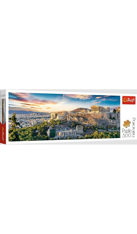 Панорамный пазл из 500 деталей, изображающий Акрополис Афины. После сборки будет создана картинка размером 660 х 237 мм. Изделие изготовлено из качественных материалов с применением специальной каландровой светоотражающей бумаги, облегчающей сборку.