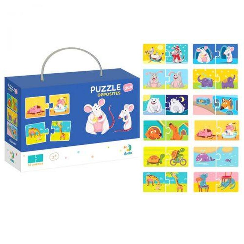 Яскраві розвиваючі дуо пазли "Протилежності". Малюкові потрібно правильно з'єднати пазли, що складаються з 2-х елементів за принципом протилежності (брудний - чистий, великий маленький і т.д.). 24 картки, 12 пазлів. Розмір детальки: 6,5 х 6,5 см. Бренд: Dodo Упаковка: Коробка Колір: Різнобарв'я Тип ел-тів живлення: Немає Ел-ти живлення в комплекті: Ні Вага з упаковкою: 200 г Габарити в упаковці: 11.5 x 17.5 x 6 см Країна виробник: Україна Матеріал: Комбінований Комплектація: 24 картки
