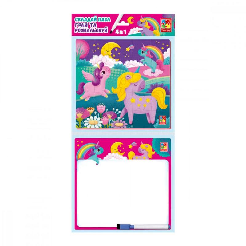 Развивающий набор 4 в 1 "единороги" vt2002-05 пазл, раскраска, маркер