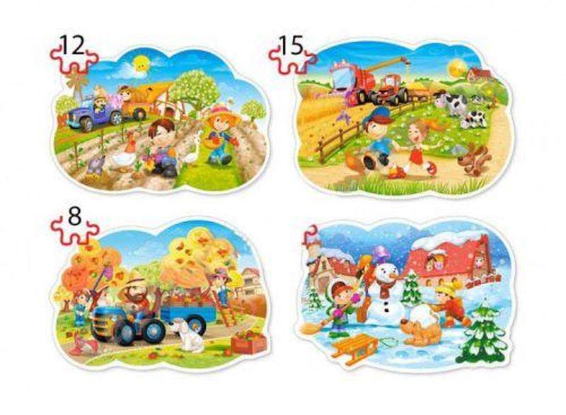 Красочные пазлы 4 в 1 "Дачная жизнь" на 8, 15, 12 и 20 элементов. Размер готовой картинки: 29 х 19,7 см.