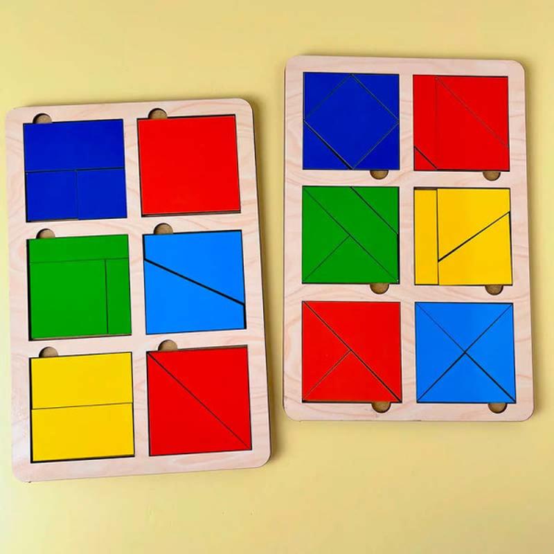 Це не просто пазлик, який треба зібрати, тут треба ще добряче подумати. Ця гра дуже подобається дітям, адже вчить доводити справу до кінця (а це іноді не так легко) та радіти своїм успіхам. Розвиває увагу, терпіння, настирність, посидючість, старанність. А скільки щастя від кожного вдало зібраного квадратика. Всього є 3 такі гри різного рівня складності. 1 рівень - це 2 планшети, на кожному з яких розташовано по 6 квадратів. Квадрати розділені на 1-8 частин різних форм. Розмір 1го квадратика - 6 см. 1 гра - це 2 планшети Починаємо з 1-го рівня і поступово ускладнюємо задачу. З цією грою у дитини розвивається просторове мислення, відчуття кольору та кмітливість. Вона вчиться мислити логічно, вибудовуючи квадрат із фігур різної форми та ступенів складності. У процесі гри дитина знайомиться із сенсорними еталонами форми та кольору, співвідношення цілого та частини.
