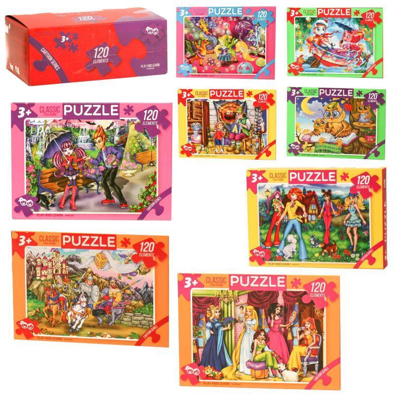 Пазли дитячі класичні, мікс видів. 120 деталей. Матеріал - картон. Упаковка - коробка. Розмір - 18х2,5х13,5 см.