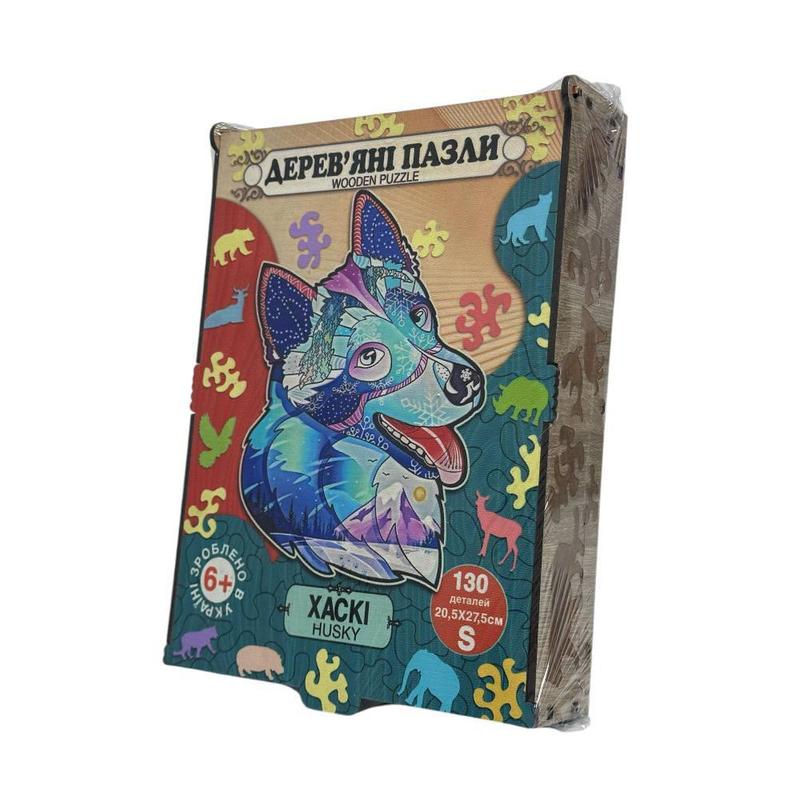 Дерев'яні пазли у дерев'яній коробці "хаскі" 21*16*4,5 см 130 деталей