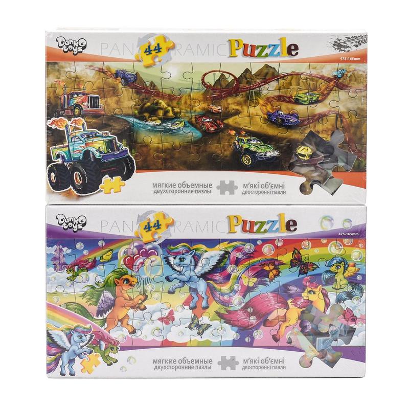 Дитячі пазли, мікс видів. Яскраві кольори. 44 деталі стандартного розміру. Матеріал - картон. Упаковка - коробка. Розмір - 28х3х20 см.