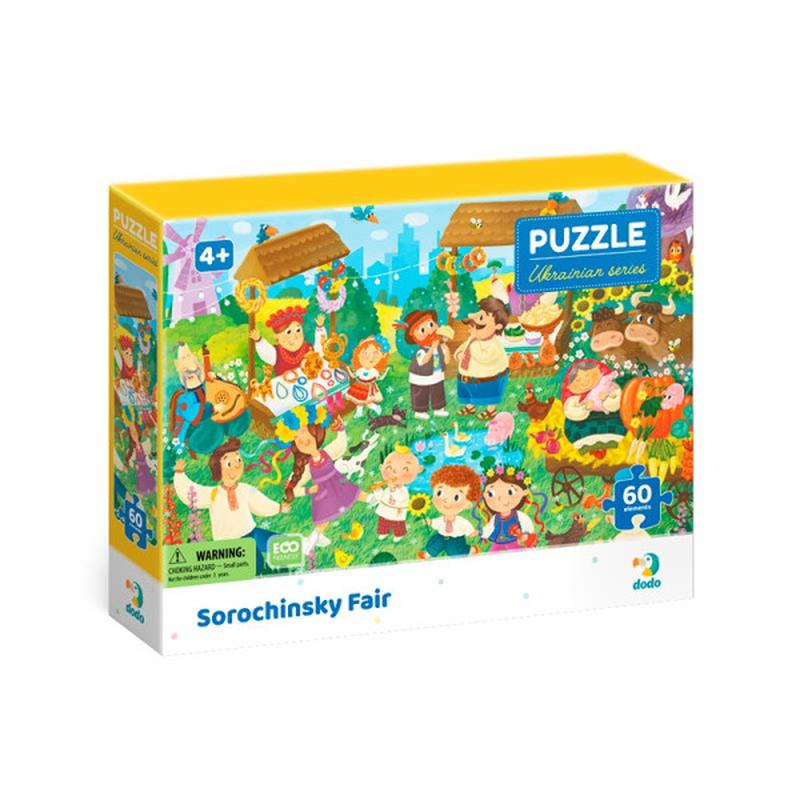 Пазл Dodo "Сорочинская Ярмарка" состоит из 60 элементов и перенесет вашего ребенка в яркий мир украинской ярмарки. На иллюстрации изображена колоритная сцена из самой известной украинской ярмарки: люди в вышиванках танцуют, поют и торгуют разнообразными товарами, вокруг них цветут подсолнечники, гуляют животные и царит атмосфера праздника. Этот пазл – отличный способ развить мелкую моторику, логическое мышление и внимательность вашего ребенка. В процессе сборки пазла ребенок узнает больше об украинской культуре и традициях, а также весело проведет время. Пазл "Сорочинская Ярмарка" - это увлекательная игра, которая поможет ребенку больше узнать о народных традициях и обычаях, а также развить навыки наблюдательности. Идеальный выбор для маленьких исследователей и любителей ярких насыщенных событий!