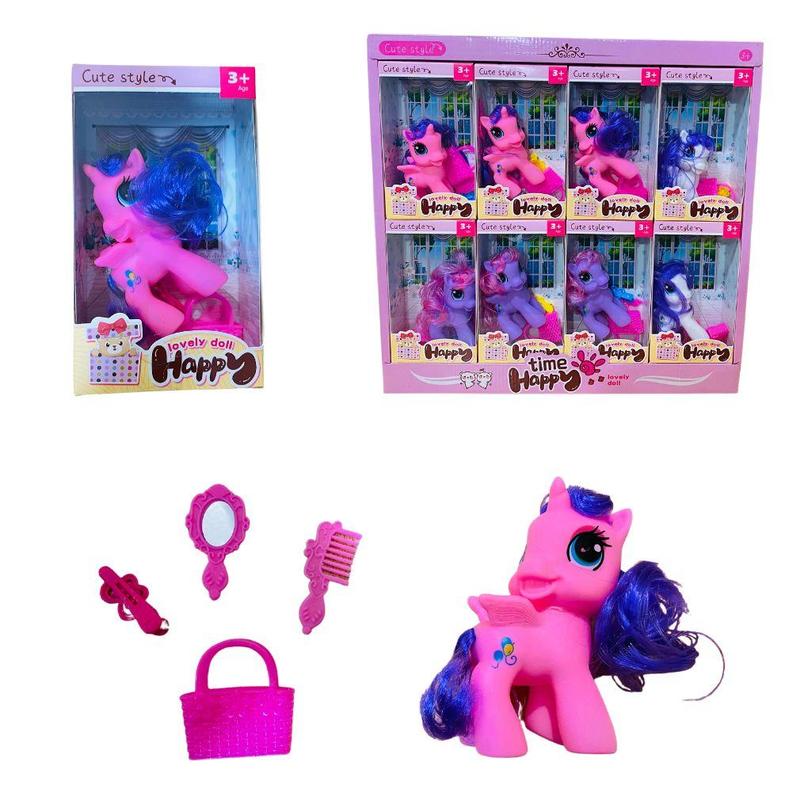 Милая фигурка поняшки с пышными гривой и хвостом. В коплект входят необходимые аксессуары для ухода за животным.
