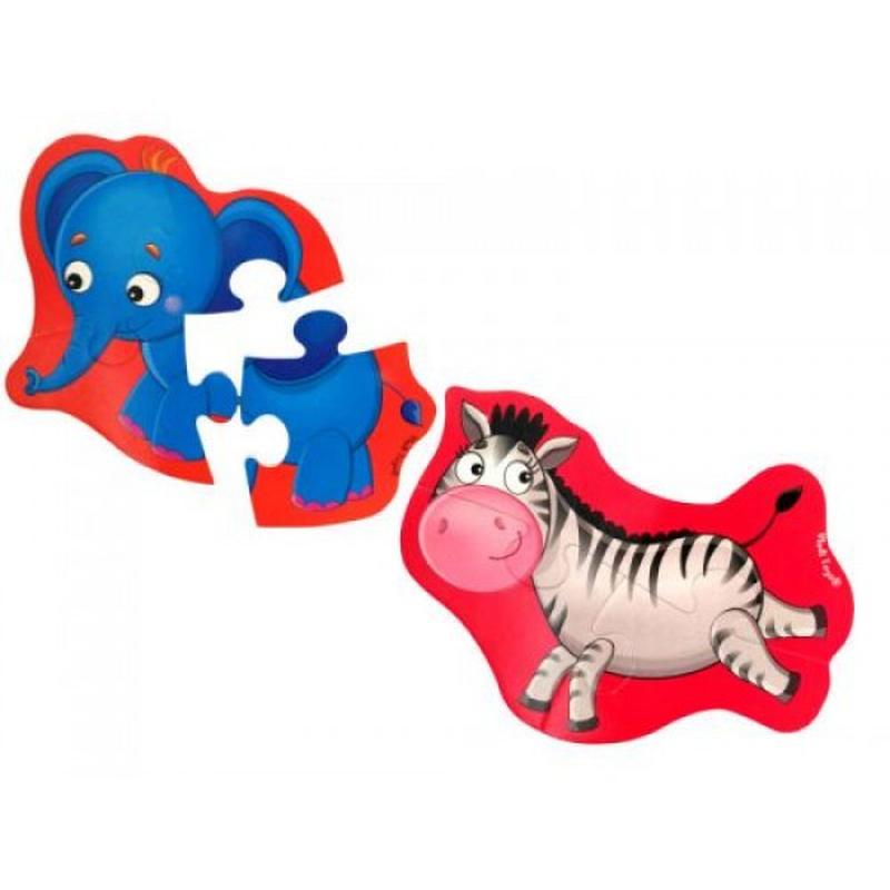 Магнитные беби пазлы "Слоник и зебрик" хороший вариант пазлов для малышей. Развивают мелкую моторику, формируют знания о животных.Части пазлов довольно крупного размера. В комплекте 2 изображения животных.