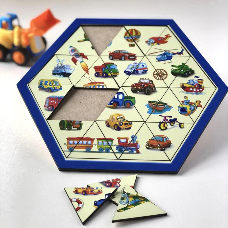 Дерев'яний пазл-головоломка "транспорт" ubumblebees (псф024) psf024 шестикутник
