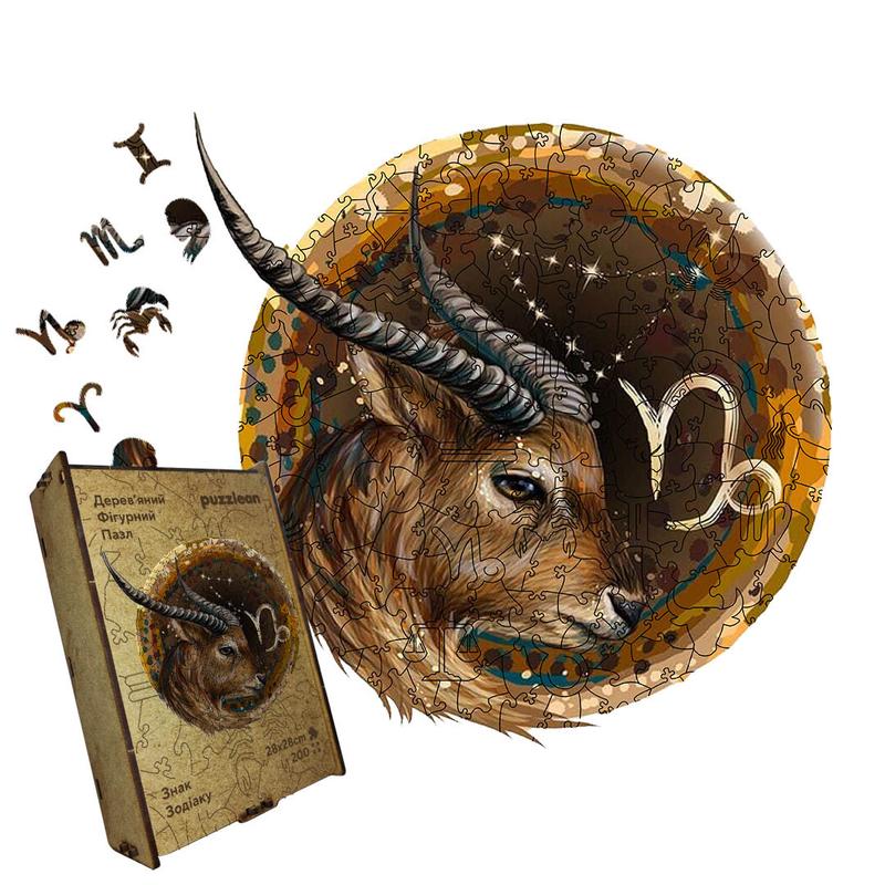 Пазл дерев'яний знак зодіаку козеріг, а5, картонна коробка