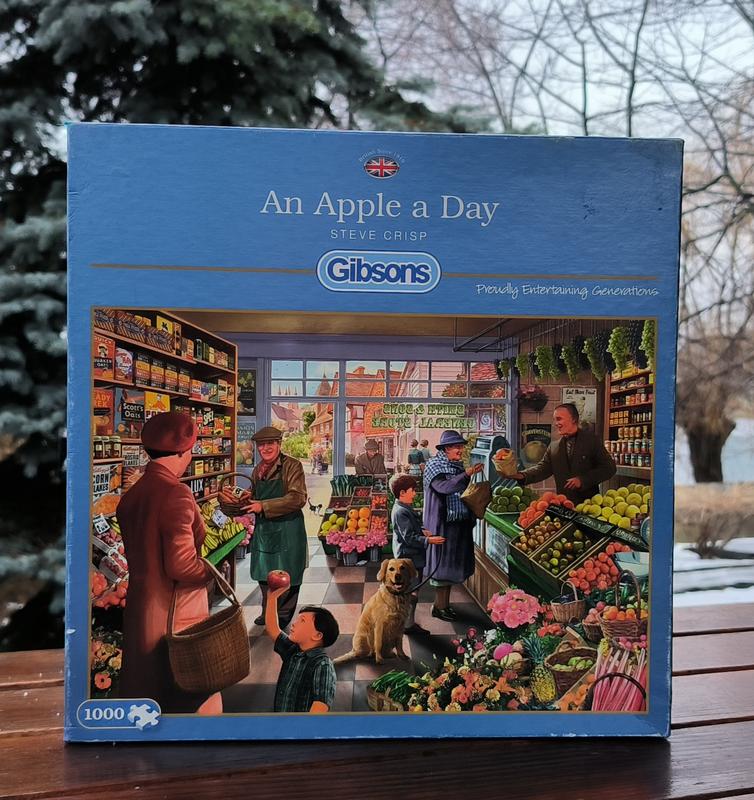 Пазл Яблоко в день английского бренда Gibsons на 1000 элементов. Состояние нового, комплект, крепкие и качественные лобзики. На второй пазл скидка 30%. Картина: Задолго до предварительно упакованных продуктов и автоматизированных касс у нас были мужчины в кепках и длинных побегах, которые собирали и взвешивали ваши фрукты и овощи, а затем тщательно завертали их в коричневые бумажные пакеты. Они всегда выглядели веселыми и даже имели время позаботиться о событиях в городе или деревне. Шесть старых пенни (2,5 пенса в современных деньгам) также были неплохими для фунта моркови!