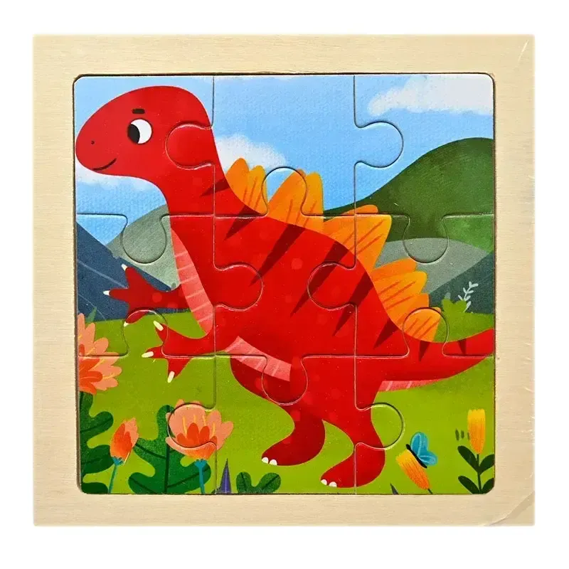 Пазл деревянный из 9 элементов 11x11 см стегозавр